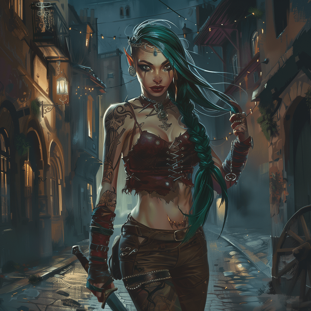 Elfe, 200+ ans. Maître d’armes de Sybil. Rude et solitaire, elle attend de ses élèves autant que d’elle-même : rien moins que la perfection. Sous sa carapace d’ancienne guerrière de l’Alfheim, elle cache de profondes fêlures.