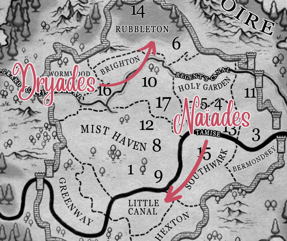 Les naïades ont été rassemblées à Little Canal et son vaste réseau de canaux urbains. Ce district fut construit après que la Conjonction transforma le sud de Londres en marécage. Les nymphes sont ainsi au plus près des fermes hydroponiques et des principaux centres de traitement des eaux usées.