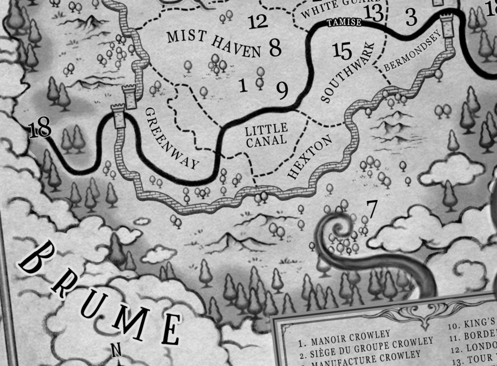 Comme dans le premier tome, celui-ci aura droit à sa carte illustrée, ou plus exactement, à DEUX cartes. Vous retrouverez donc la carte de Londres du tome 1 révisée avec les lieux évoqués dans ce tome 2. Ci-contre un aperçu de la carte du tome 1.